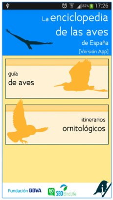 Se trata de la app AVES DE ESPAÑA, una auténtica enciclopedia de aves desarrollada por SEO/Birdlife. En ella encontrarás toda la información que necesitas para identificar aves: fotografías, mapas, vídeos y descripciones muy completas. Y además, incluye una herramienta muy útil, las grabaciones de los cantos de cada especie.