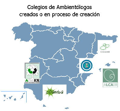Una vez, un amigo ingeniero me preguntó si estaba colegiado, muy común en muchas carreras profesionales (médicos, abogados, arquitectos, ingenieros, farmacéuticos, biólogos, etc.). Pero lamentablemente los ambientólogos hemos estado desamparados durante muchos años sin colegios profesionales hasta que recientemente han ido constituyendose. El primero fue el Colegio Oficial de Ambientólogos de Cataluña que surgió en 2003 y el siguiente no apareció hasta el 2008. A día de hoy están constituidos los Colegios Oficiales de Ambientólogos de Madrid, Cataluña, Comunidad Valenciana e Islas Baleares, mientras que los de Castilla la Mancha, Andalucía y Extremadura (mi comunidad) se encuentran en trámites de constitución.